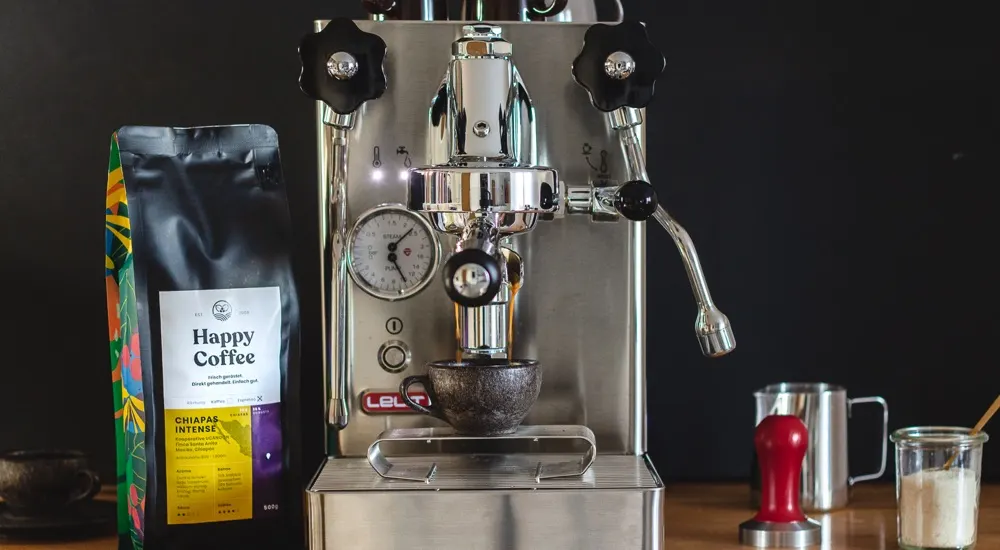 Doch was genau ist das Besondere an Crema? Mit welchen Maschinen – Espressokocher, Siebträgermaschine oder Vollautomat – gelingt die Zubereitung am besten? Und welche Kaffeebohnen solltest du für eine gute Crema z.B. aus unserem Happy Coffee Sortiment verwenden? In diesem Beitrag geben wir wichtige Antworten. Du erfährst außerdem, was eine echte Crema ausmacht, wie du von ihr Rückschlüsse auf die Qualität des Kaffees treffen kannst und wie man Fehler bei der Crema-Herstellung behebt.