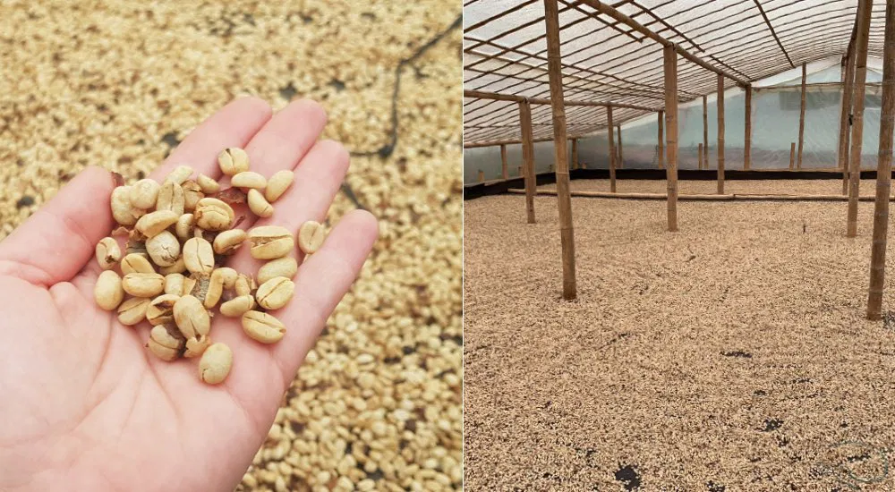 Nach dem Ernten werden die Kaffeekirschen maschinell gewaschen und in großen Becken in der Sonne für Stunden fermentiert – was das Aroma und den Koffeingehalt erhöht. Anschließend folgt die Trocknung, Häutung und maschinelle Sortierung – bis die Rohbohnen in Säcke gefüllt und an Röstereien übergeben werden.