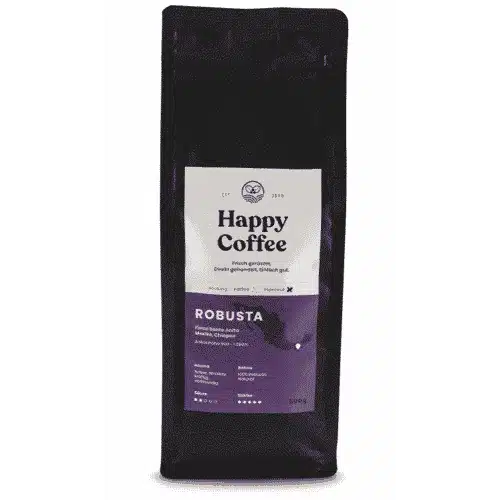 Es gibt Initiativen in diversen Robusta-Anbauländern, die sich mit der schlechten Reputation von Robusta nicht zufrieden geben wollen – völlig zurecht, wie wir finden. Denn ein Fine Robusta wie unser Happy Coffee Robusta kann dank intensiver Anstrengungen auf den Kaffeefarmen und bei der Weiterverarbeitung durchaus geschmacklich an einen Arabica heranreichen. Geschmacklich ist er wirklich einzigartig!