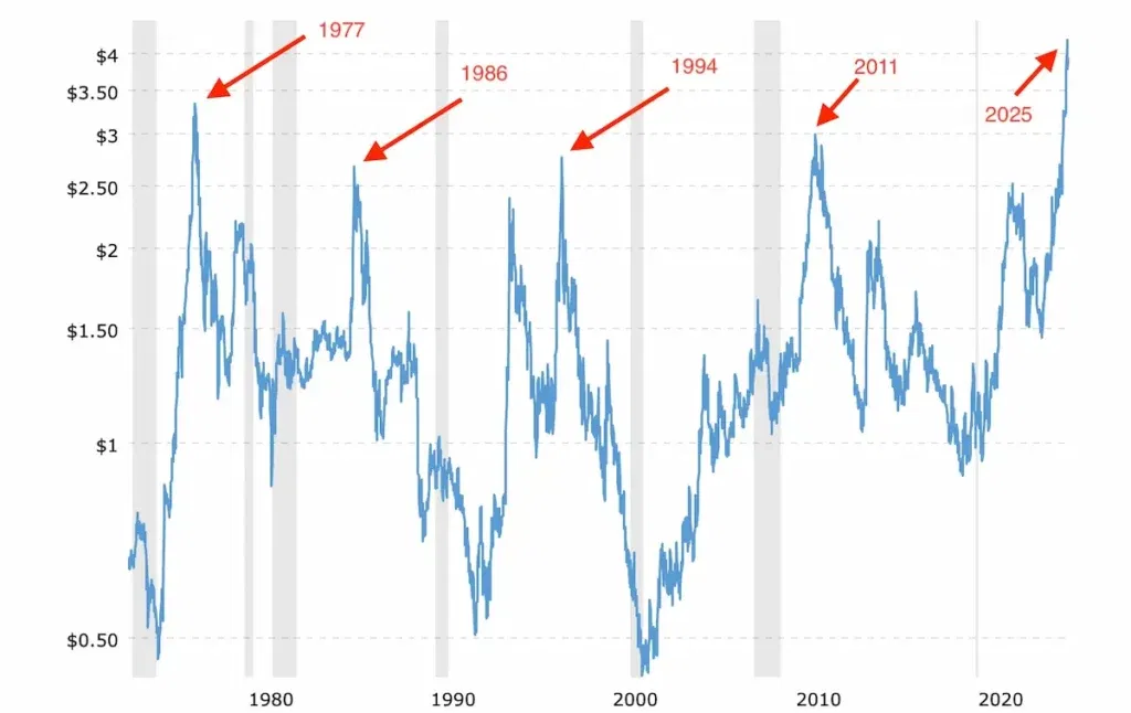 Noch interessanter wird es, wenn wir die Inflation berücksichtigen. Ein Euro im Jahr 1977 hatte eine ganz andere Kaufkraft als heute. In „echten“ 2025er-Euros gerechnet, erreichte der Kaffeepreis 1977 nach einem Frost in Brasilien fast 12 EUR pro Pfund – also deutlich mehr als die heutigen Höchststände!